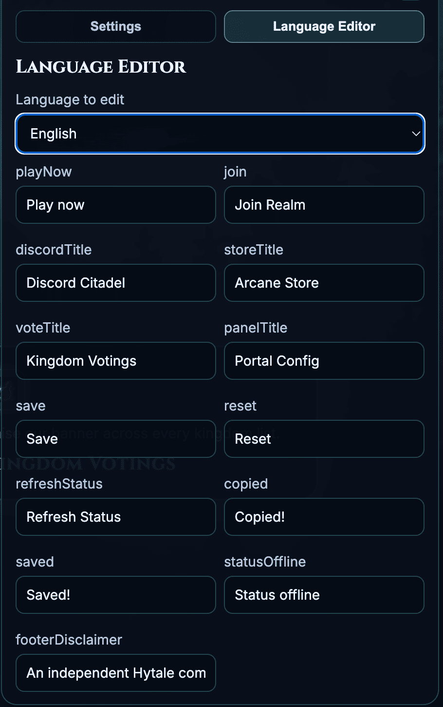 - Per-language text overrides stored in the browser