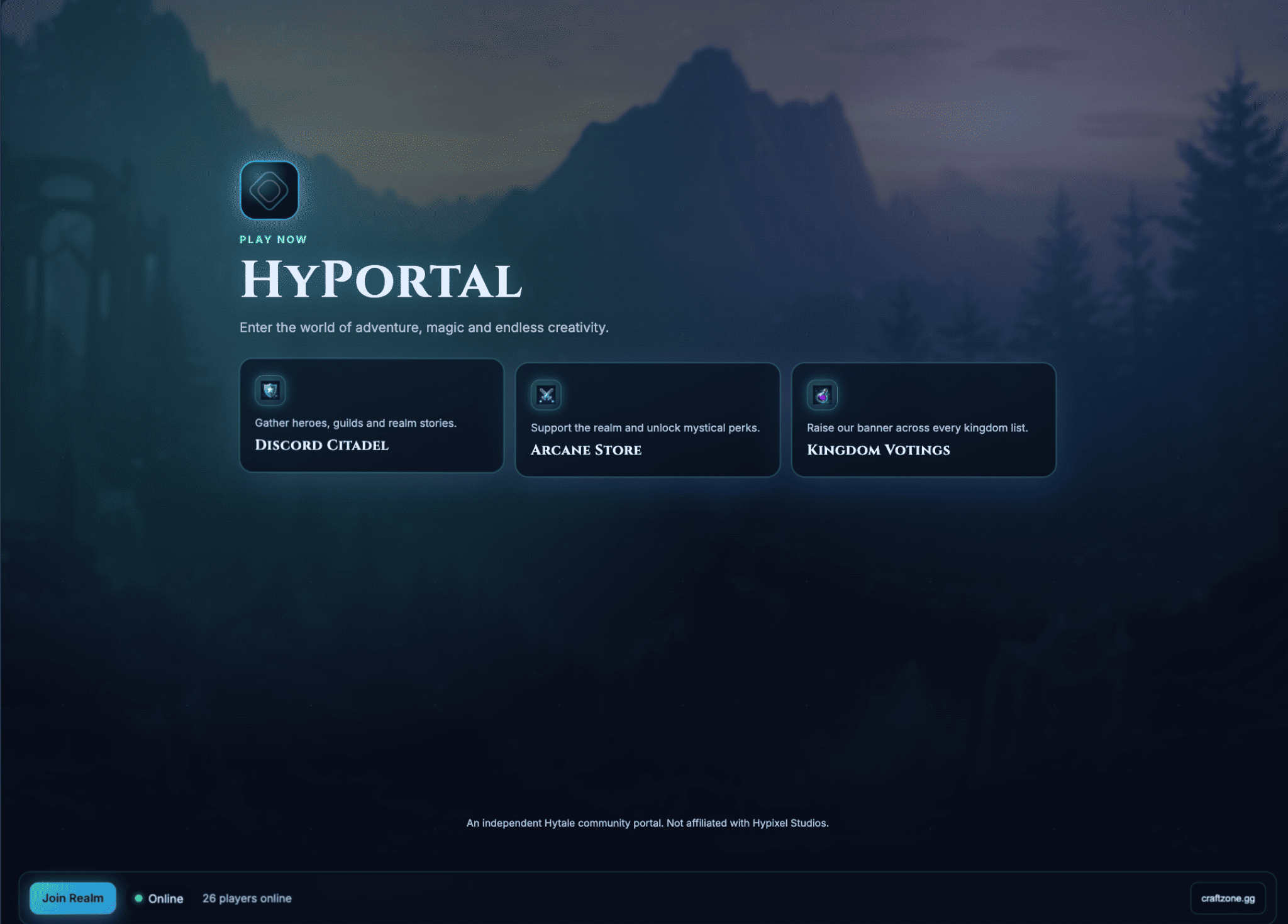 Landing page for Hytale servers. Vanilla HTML/CSS/JS, live status, config panel, no build. - BitaceS/hytale-portal